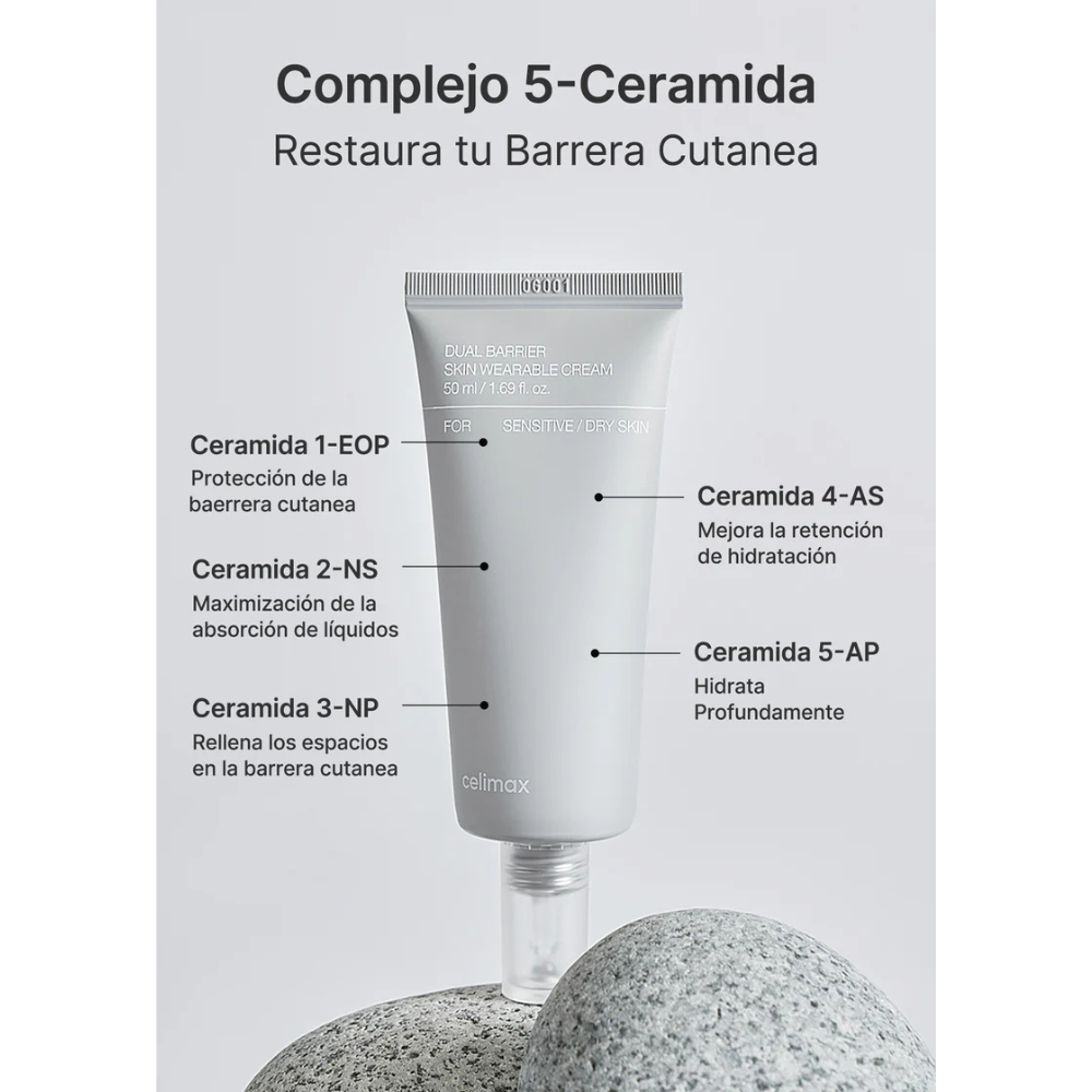 FORTALECIMIENTO DE LA BARRERA CUTÁNEA: Enriquecido con 5 tipos de ceramidas de origen natural, restaura la capacidad natural de defensa de la piel fortaleciendo la barrera de hidratación.