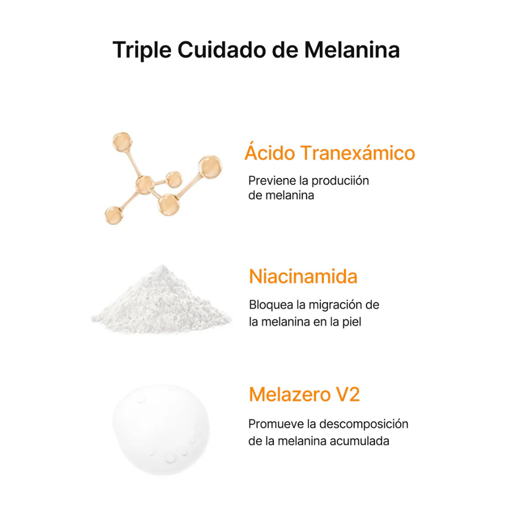Agua, dipropilenglicol, butilenglicol, isopentildiol, niacinamida, propanodiol, glicerina, hidroxiacetofenona, caprilil glicol, ácido tranexámico, etilhexilglicerina, goma xantana, extracto de papaya (Carica papaya), ácido cítrico, extracto de Prunus mume, extracto de manzana (Pyrus malus), extracto de uva (Vitis vinifera), 1,2-hexanodiol, fitato de sodio, extracto de hoja de Eriobotrya japonica, hialuronato de sodio, extracto de menta (Mentha viridis), arbutina, glicirrizato dipotásico, hialuronato de hidroxipropiltrimonio, tocoferol, ácido hialurónico hidrolizado, hialuronato de sodio acetilado, ácido hialurónico, polímero cruzado de hialuronato de sodio, hialuronato de sodio hidrolizado, hialuronato de potasio