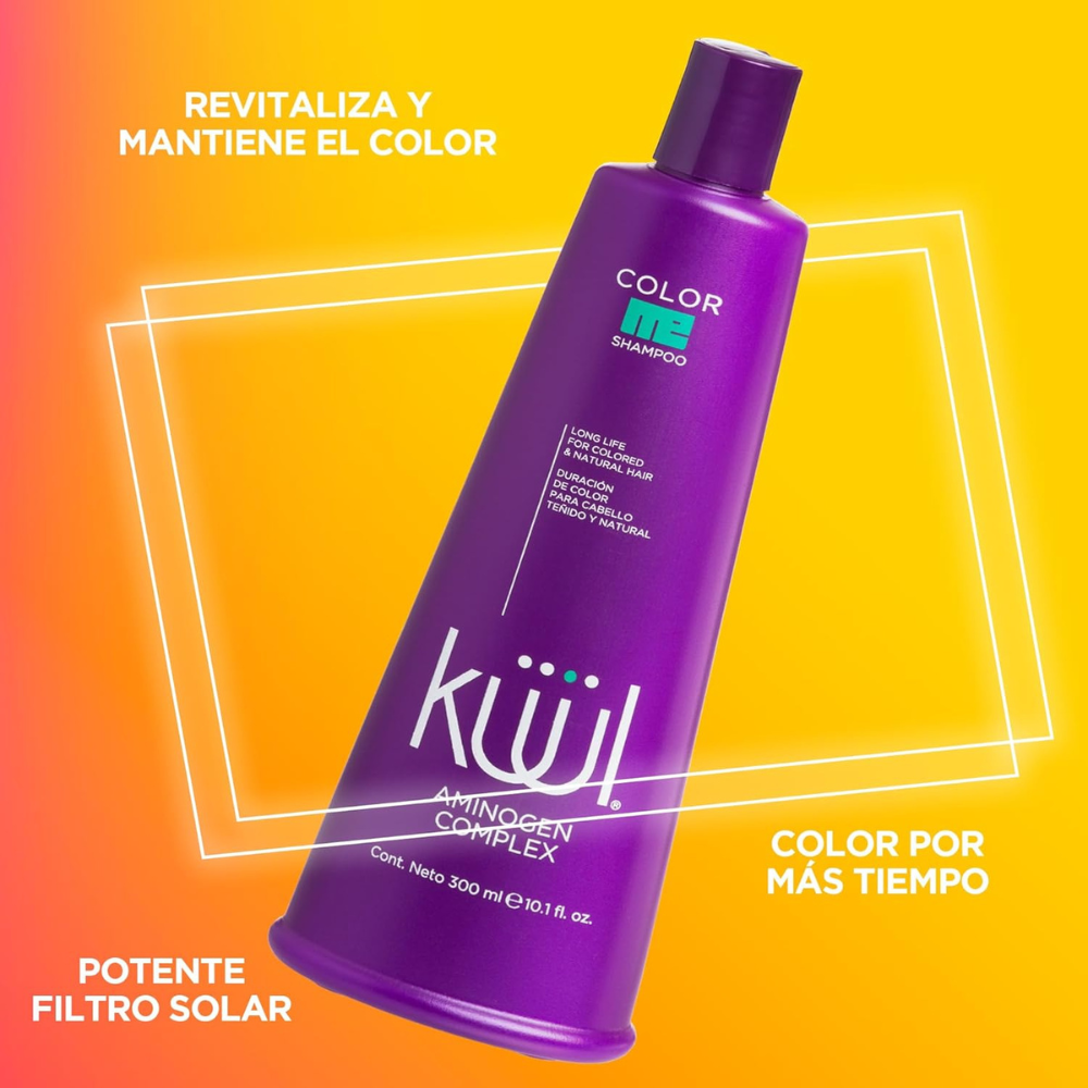 Aplica una pequeña cantidad de Küül Color Me Shampoo en la palma de la mano y esparce sobre el cabello húmedo dando un masaje circular, déjalo reposar por dos o tres minutos y enjuaga. Repite si es necesario.