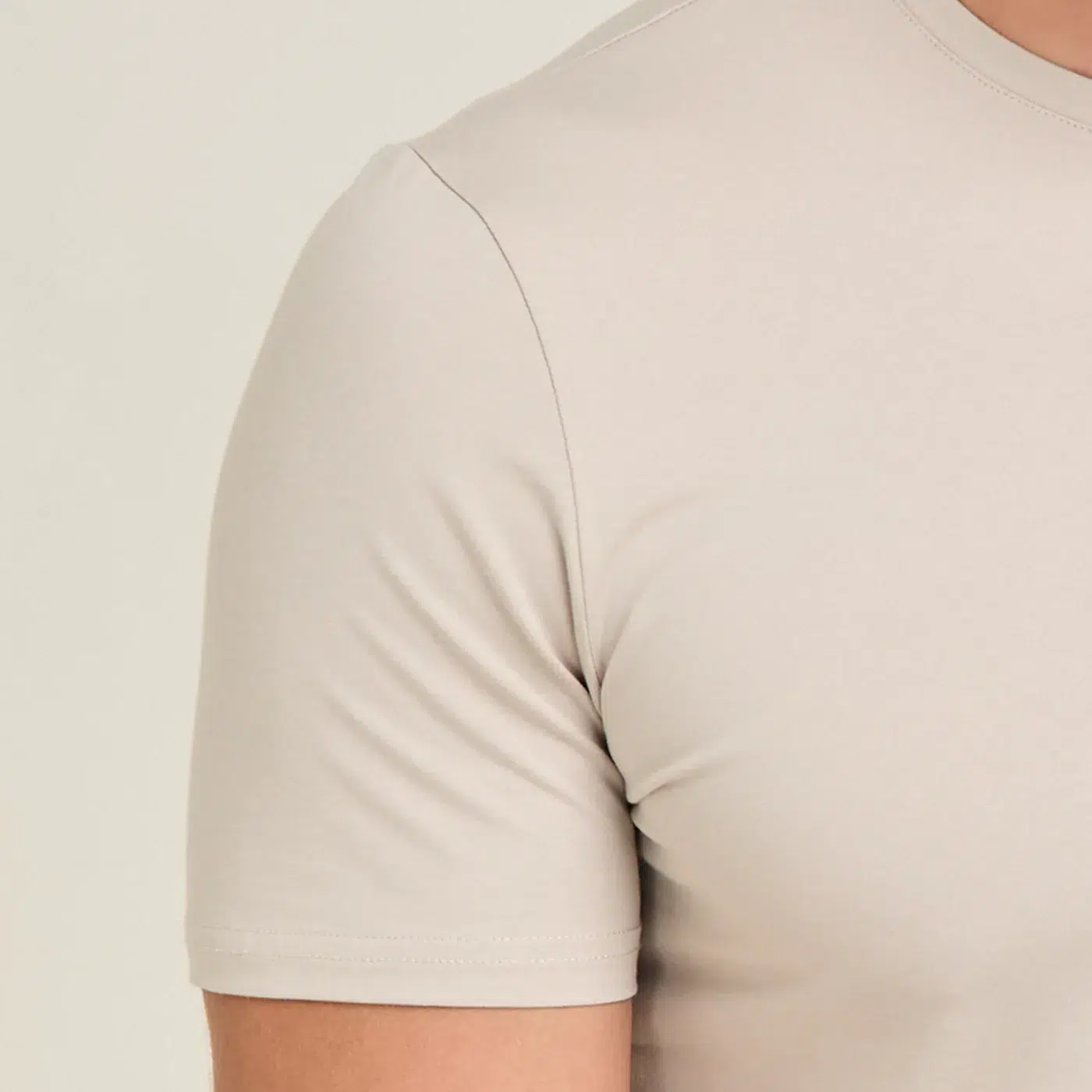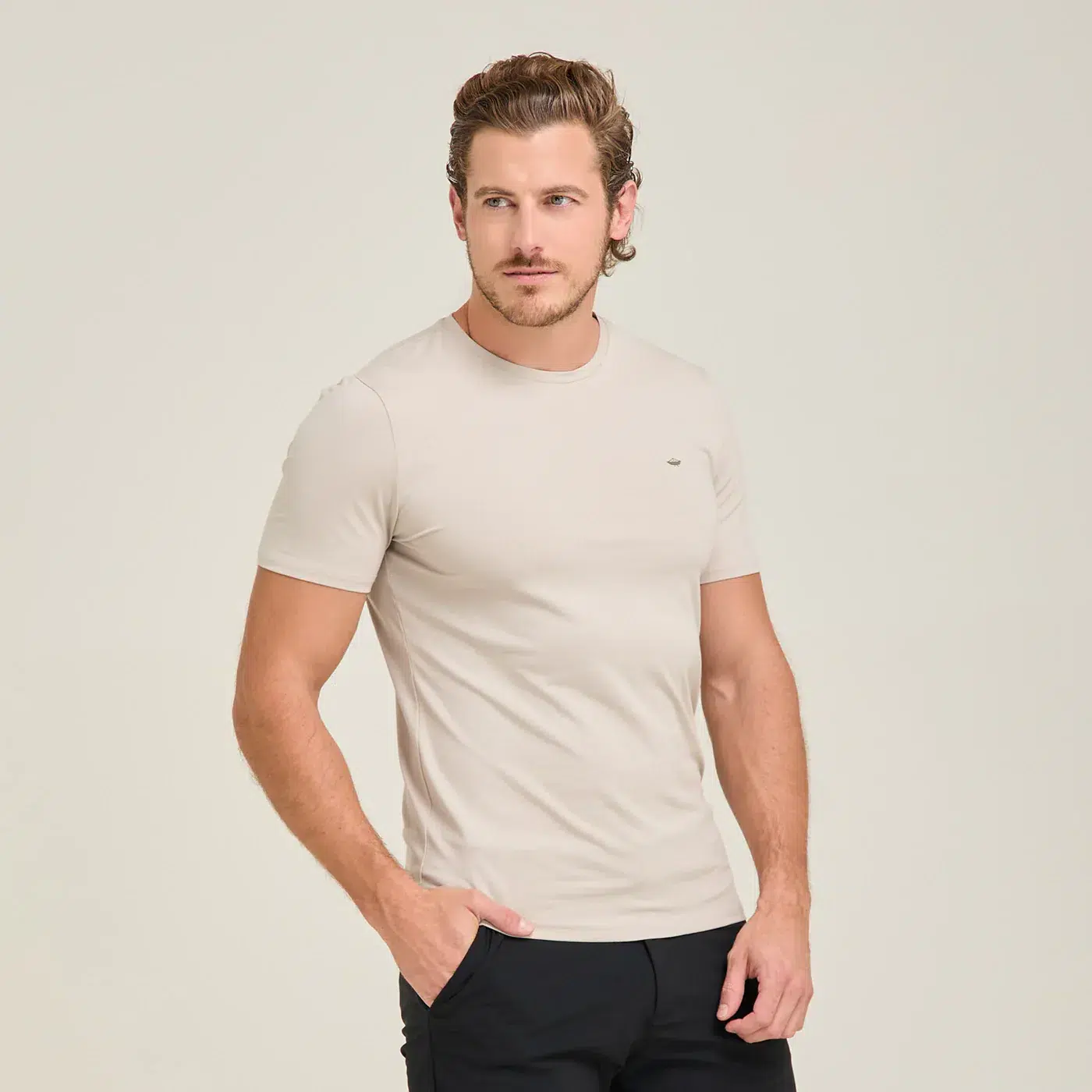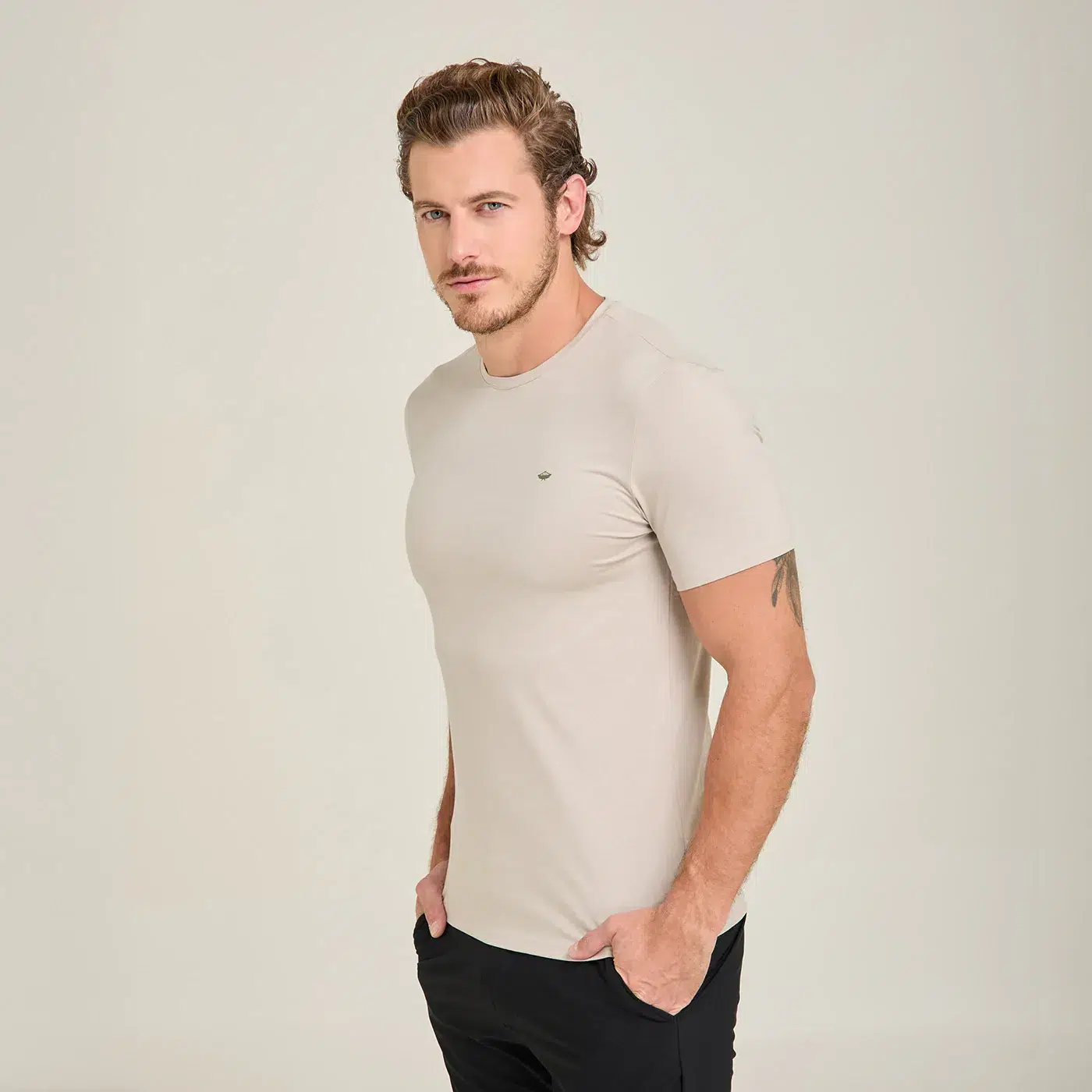 Esta tshirt básica de manga corta en tono neutro, confeccionada con algodón de primera calidad, tiene una silueta regular y cuello redondo para brindar máxima comodidad y estilo.