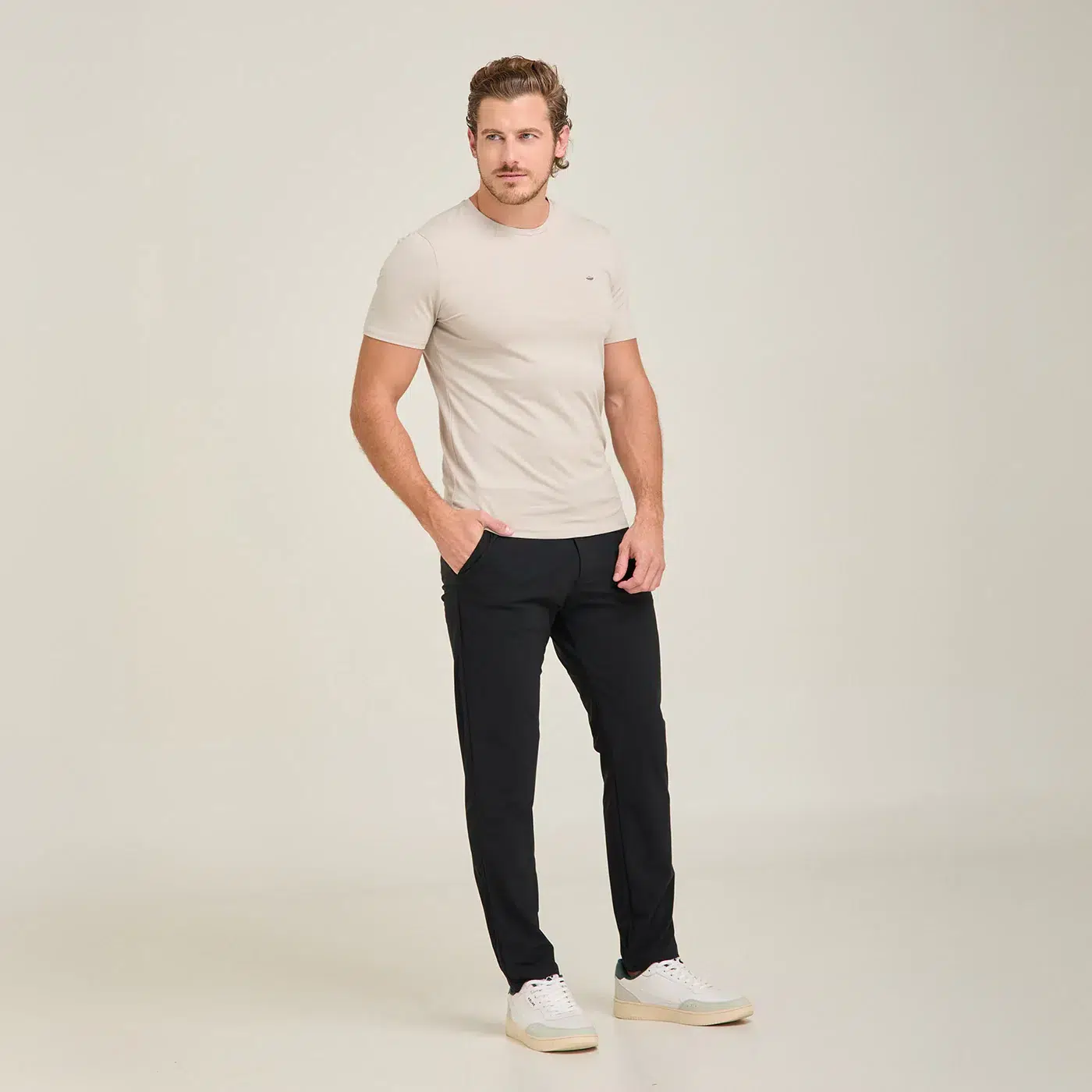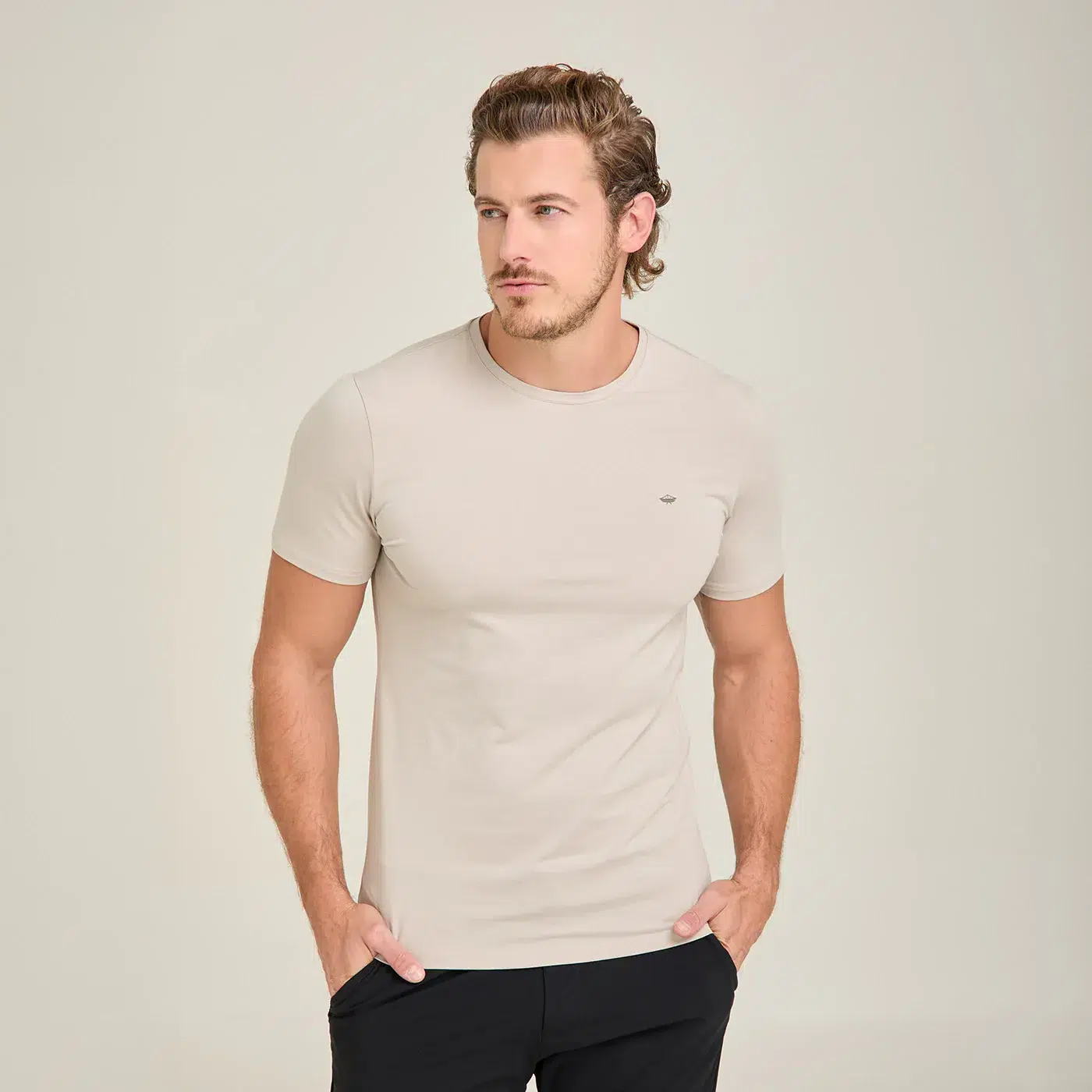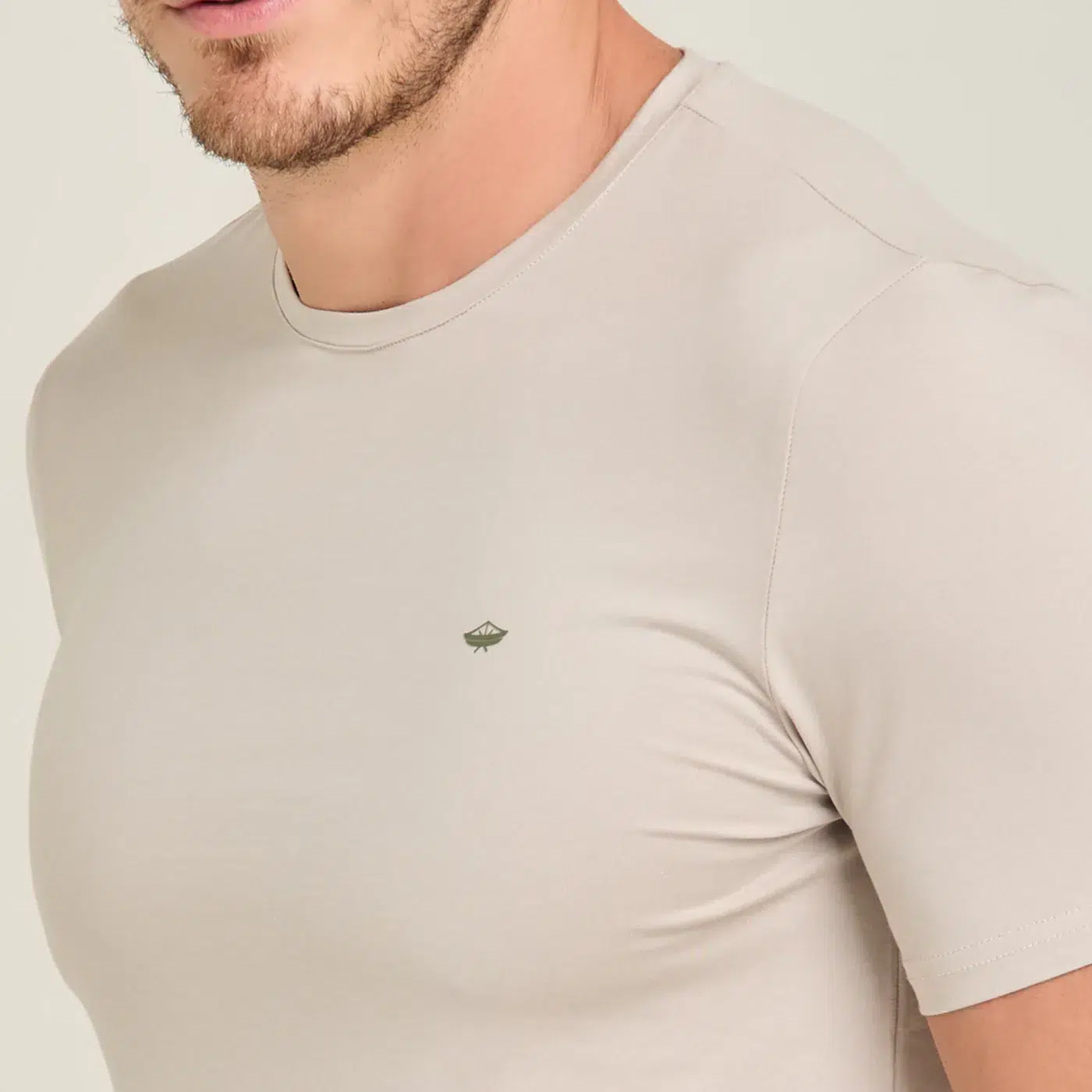 Esta tshirt básica de manga corta en tono neutro, confeccionada con algodón de primera calidad, tiene una silueta regular y cuello redondo para brindar máxima comodidad y estilo.