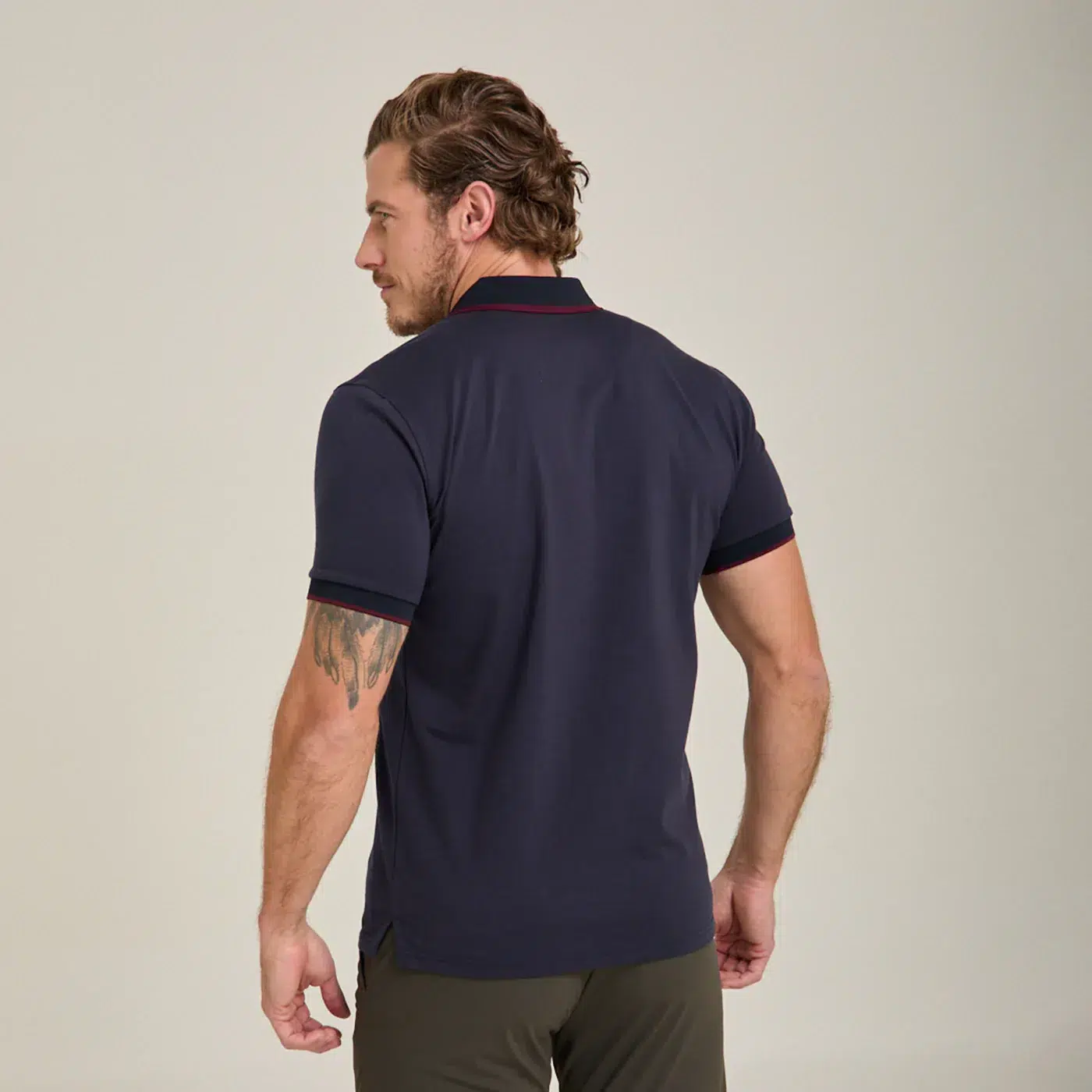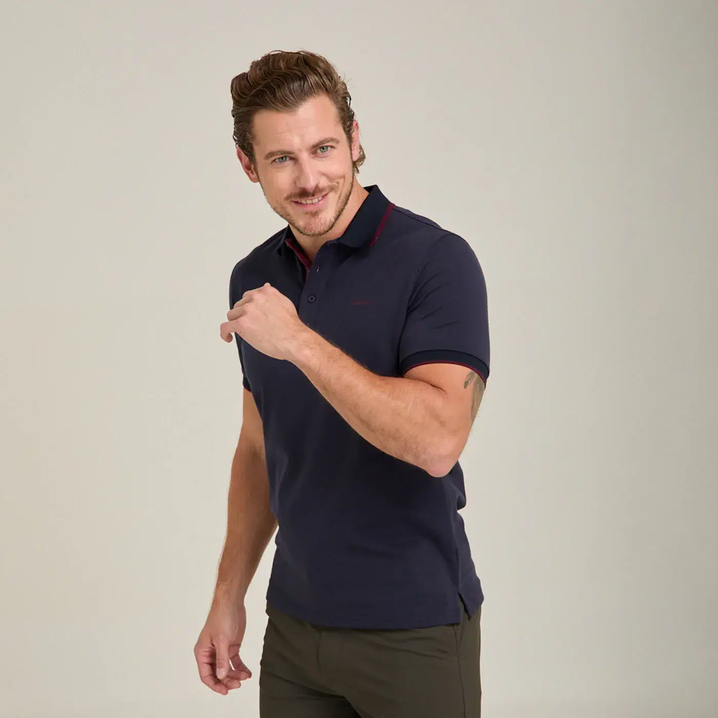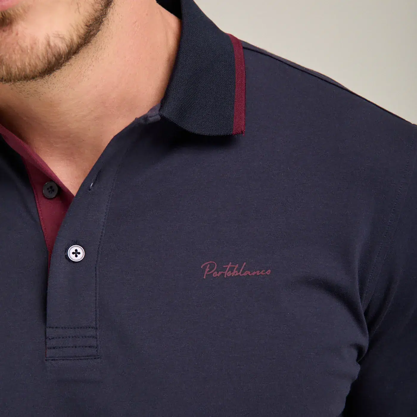 Polo de corte regular con ribetes en cuello y puños, botones de madera y logo en relieve. Hecha con mezcla de algodón para máxima comodidad y estilo casual refinado.