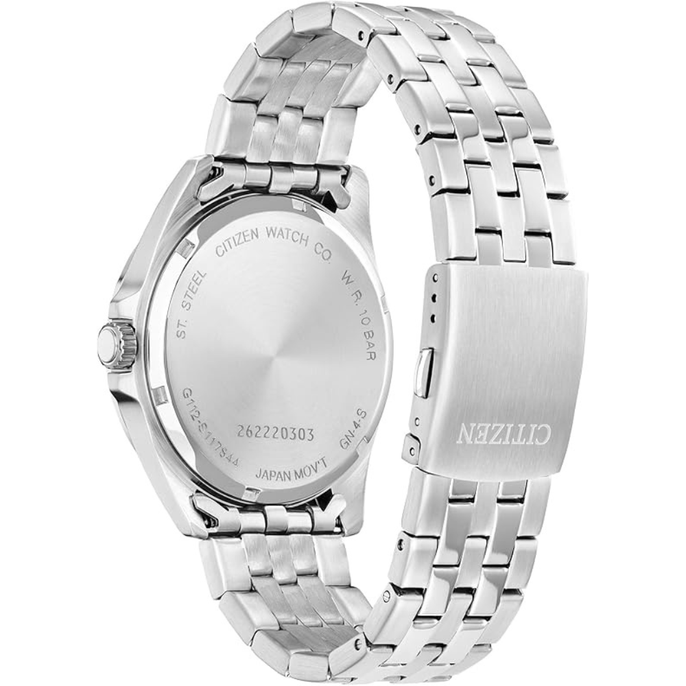 Un movimiento alimentado por batería. El cristal de cuarzo regula el tiempo logrando una precisión de 15 segundos al mes.