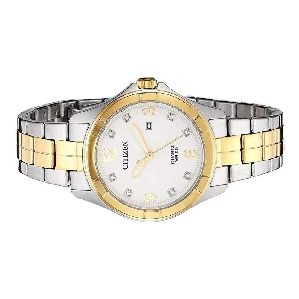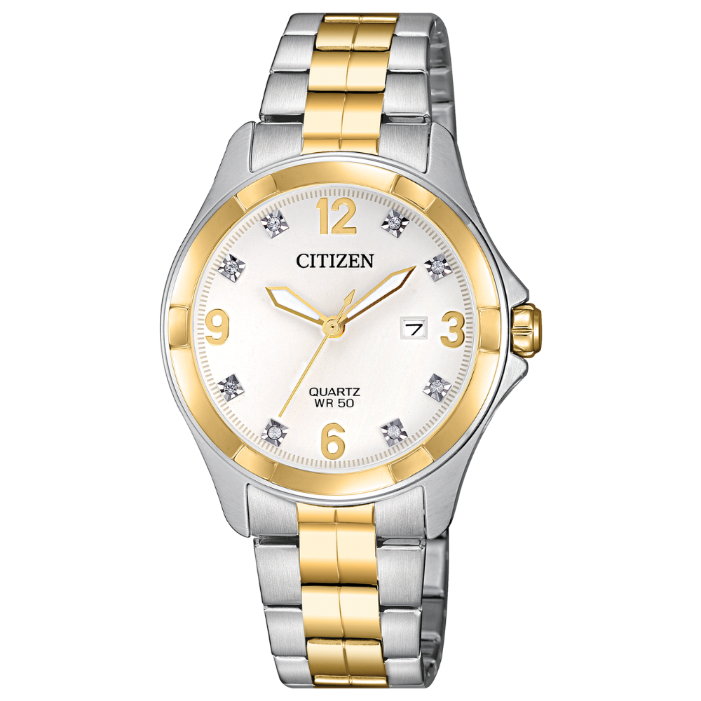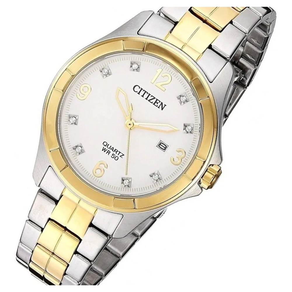 Un movimiento alimentado por batería. El cristal de cuarzo regula el tiempo logrando una precisión de 15 segundos al mes.