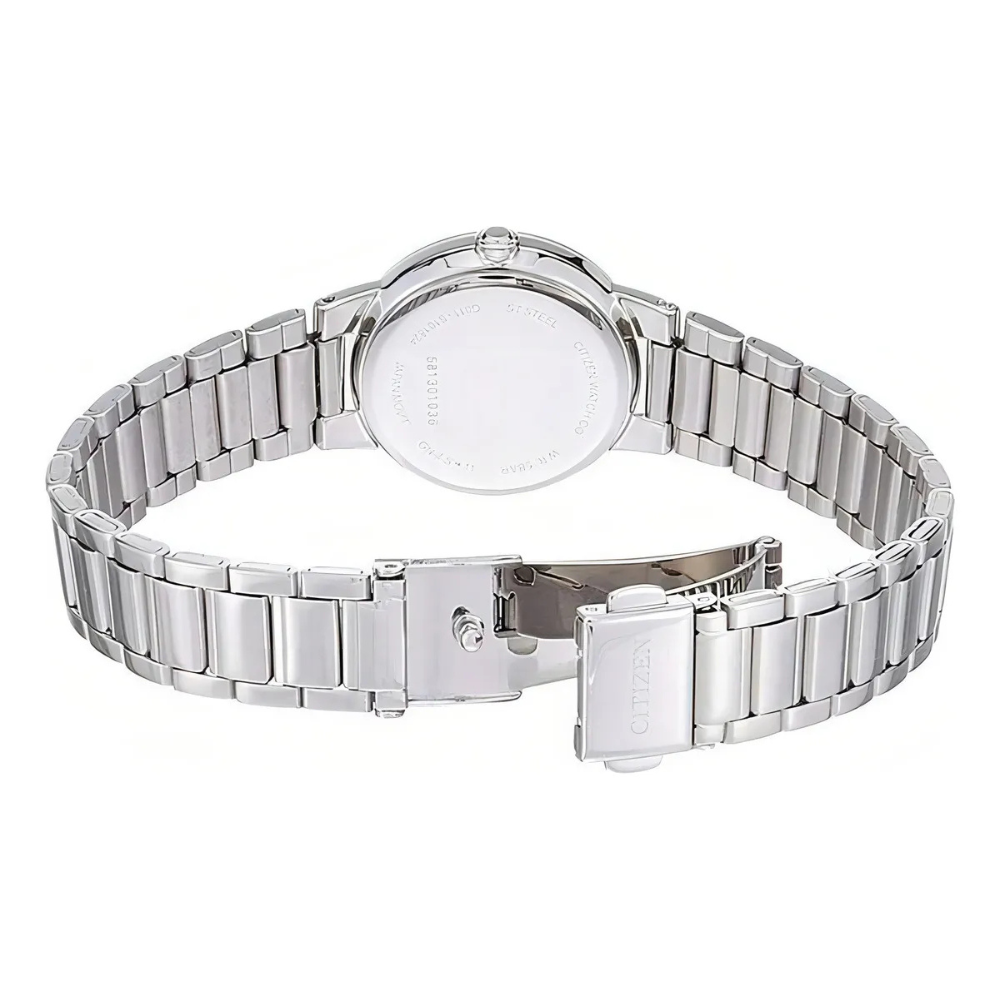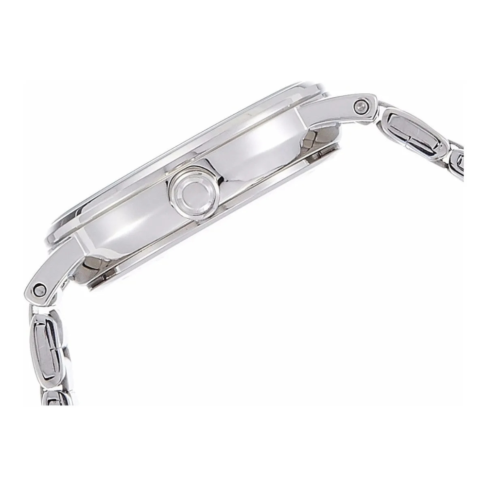 Un movimiento alimentado por batería. El cristal de cuarzo regula el tiempo logrando una precisión de 15 segundos al mes.